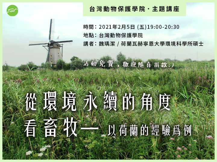 【台灣動物保護學院】主題講座:從環境永續的角度看畜牧—以荷蘭的經驗為例
