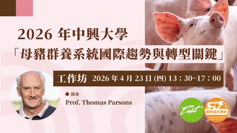 敬邀養豬關聯產業人才,踴躍參與,與世界趨勢接軌,導入國際視與經驗,邁向對動物、飼養產業及消費者共好的永續未來~